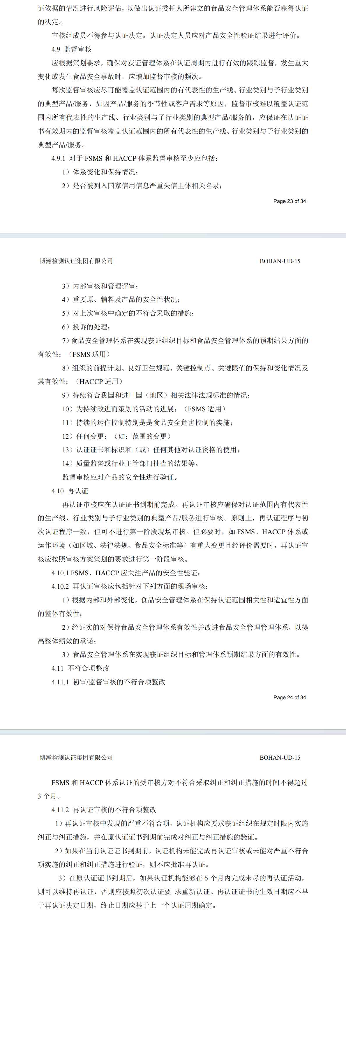 BOHAN-UD-15食品安全管理体系(FSMS)和危害分析与关键控制点(HACCP)认证要求补充程序